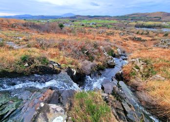 Two bed cottage nestled in the foothills of the Ox Mountains with c 16.51 acres of land and some stone buildings.