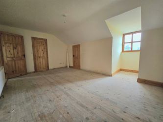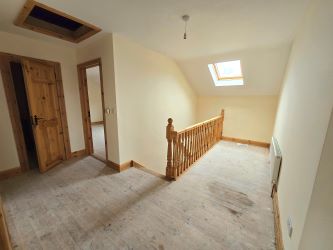 The house is fully wired and plumbed, with radiators installed and an unfinished fireplace. Electric showers are fitted, and the attic is insulated. The roof and double-glazed windows are in good condition. An oil tank, water tank, and boiler are installed.