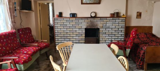 Accommodation consists of living room/kitchen, 2 bedrooms, bathroom and store room. Requires restoration. Inc. buildings: haybarn, dry shed and stables.
