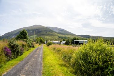 Old world cottage on elevated and unrivalled position perched on Nephin mountain overlooking the North Mayo countryside. Accommodation consists of living room/kitchen, 2 bedrooms, bathroom and store room. Requires restoration. Inc. buildings: haybarn, dry shed and stables.