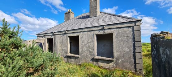 Derelict cottage with c. 7 acres of agricultural land for sale in Knockshambo, Belmullet, Co. Mayo.